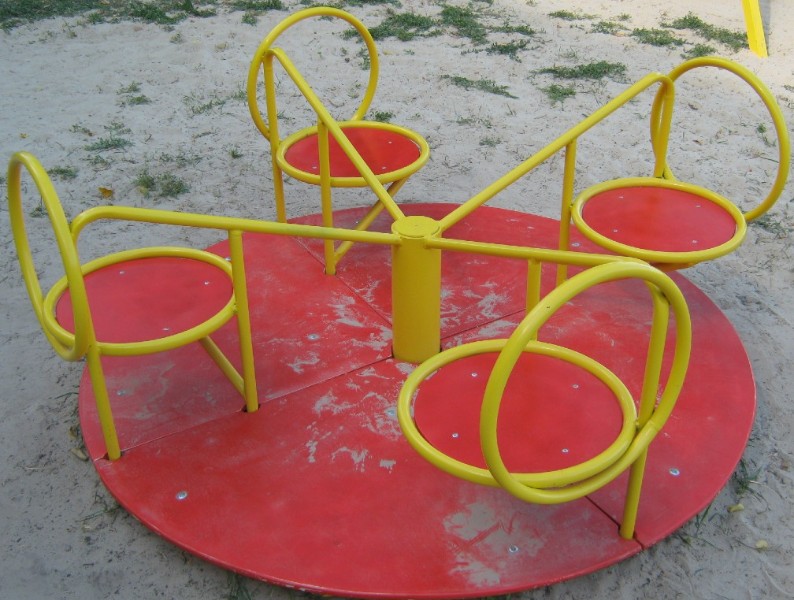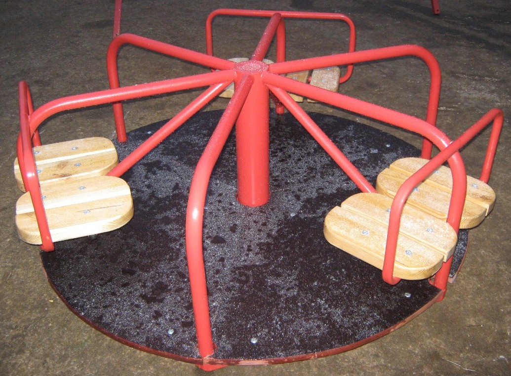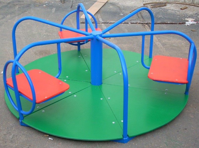 Это базовый и самый ходовой элемент на детских спортивно-игровых площадках. Классическая карусель представлена в виде крутящейся платформы. Изготавливаются такие аттракционы из металла и дерева. Металлический каркас - цельный и прочный, благодаря чему карусели имеют повышенные антивандальные свойства.