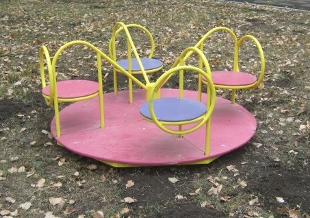 - Балансиры. Это нетравматичные и популярные качели, которые запускаются в движение за счет перевеса. Выглядят балансиры как доска, прикрепленная по центру в тяжелому основанию. На других концах доски закреплены сиденья. Такую купить карусель для улицы в Днепре рекомендуется для садика, дворовой уличной площадки.